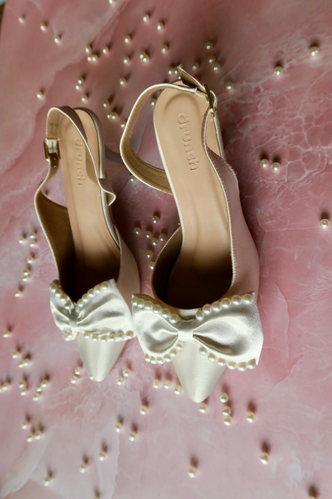 Wrapped in soft white satin and finished with delicate pearls, the Moonlit White Heels are designed for understated main-character moments. With a closed-toe silhouette and a comfort-first fit, they’re bridal-worthy yet versatile enough for any special occasion. Like every Drunch pair, they speak in whispers but leave a lasting impression.